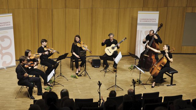 Mit ihrem Programm „Mediterrane Sommernacht“ gastierte die große siebenköpfige Besetzung des Kölner Klassik Ensembles mit einem besonderen Sommerkonzert bei den Kammerkonzerten im Humboldt-Saal. Barocke, klassische und romantische Solokonzerte wurden mit virtuoser spanischer Musik und kunstvollen Tangowerken verbunden. Hier haben wir einen Rückblick mit Konzertvideo zusammengestellt.